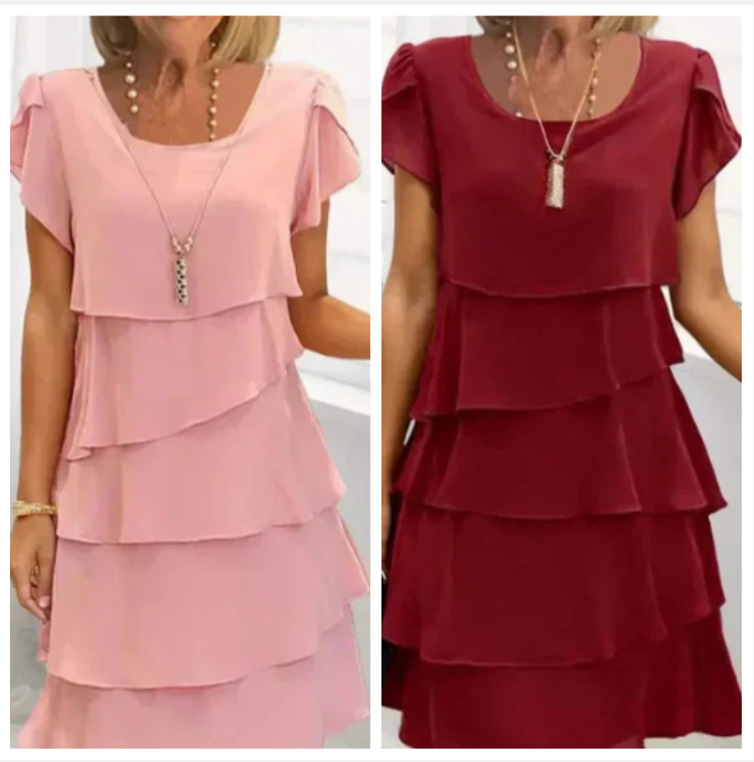 Het pakket bevat: 1: 1 * Casual damesjurk met golvende ruches